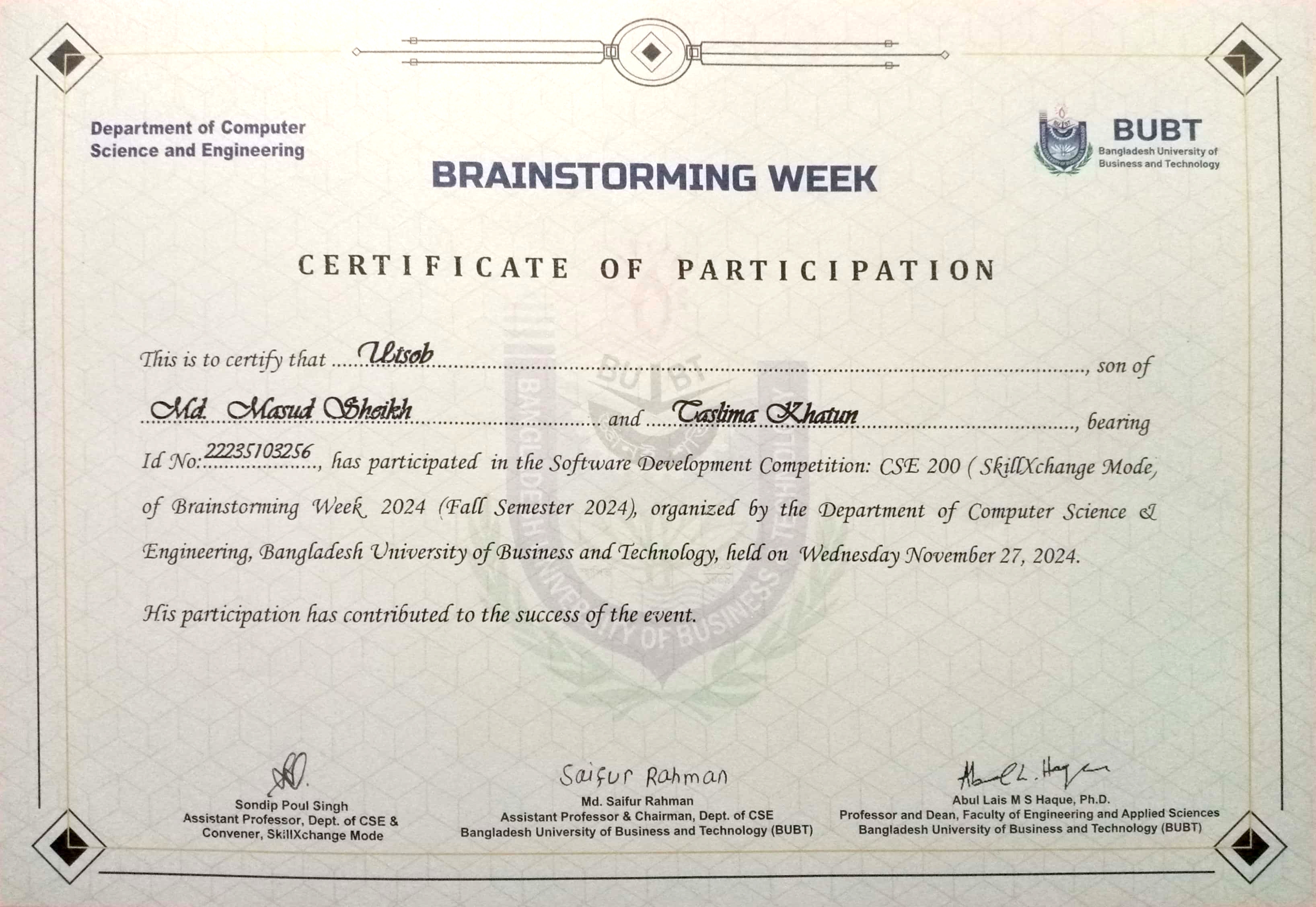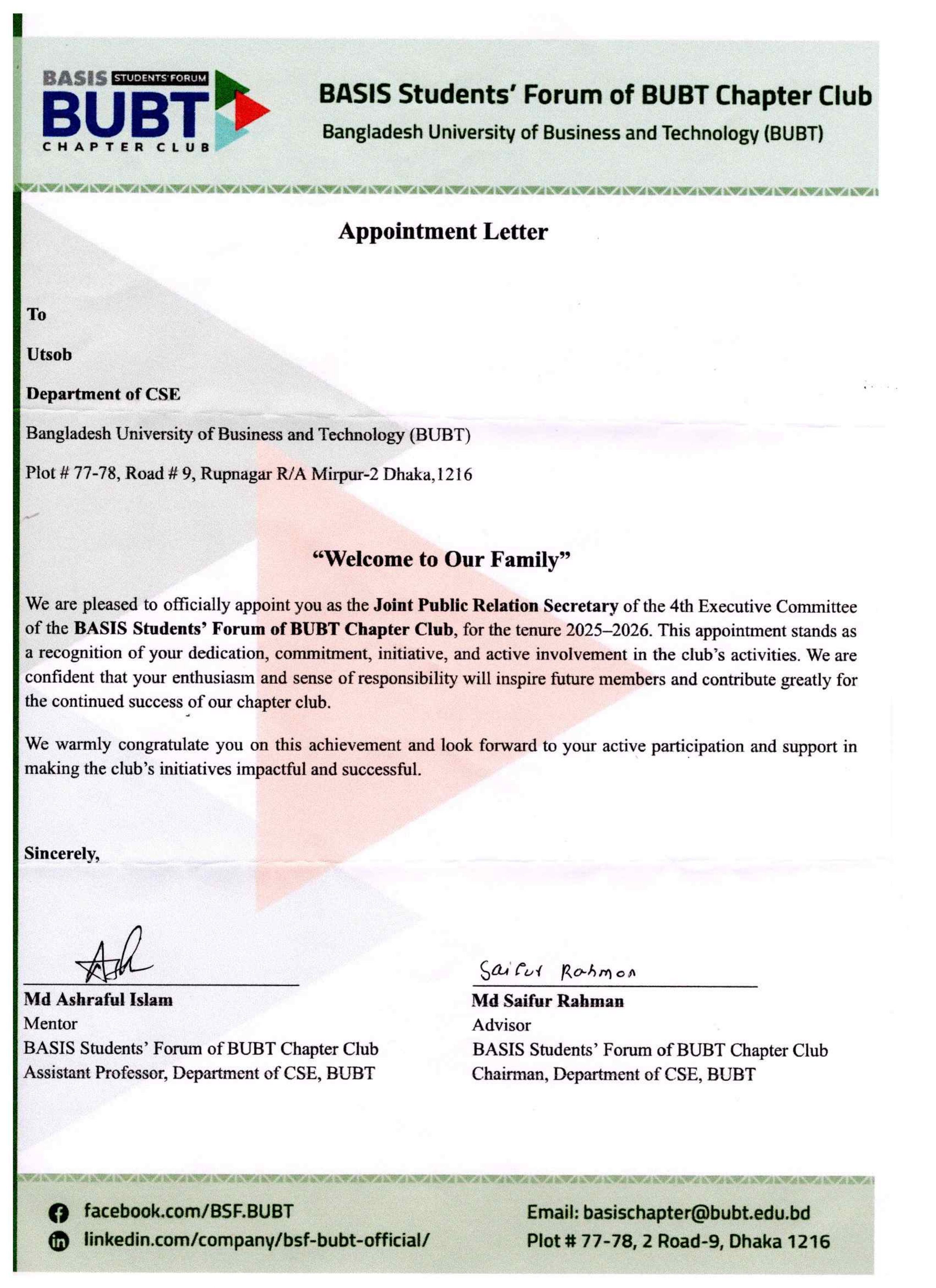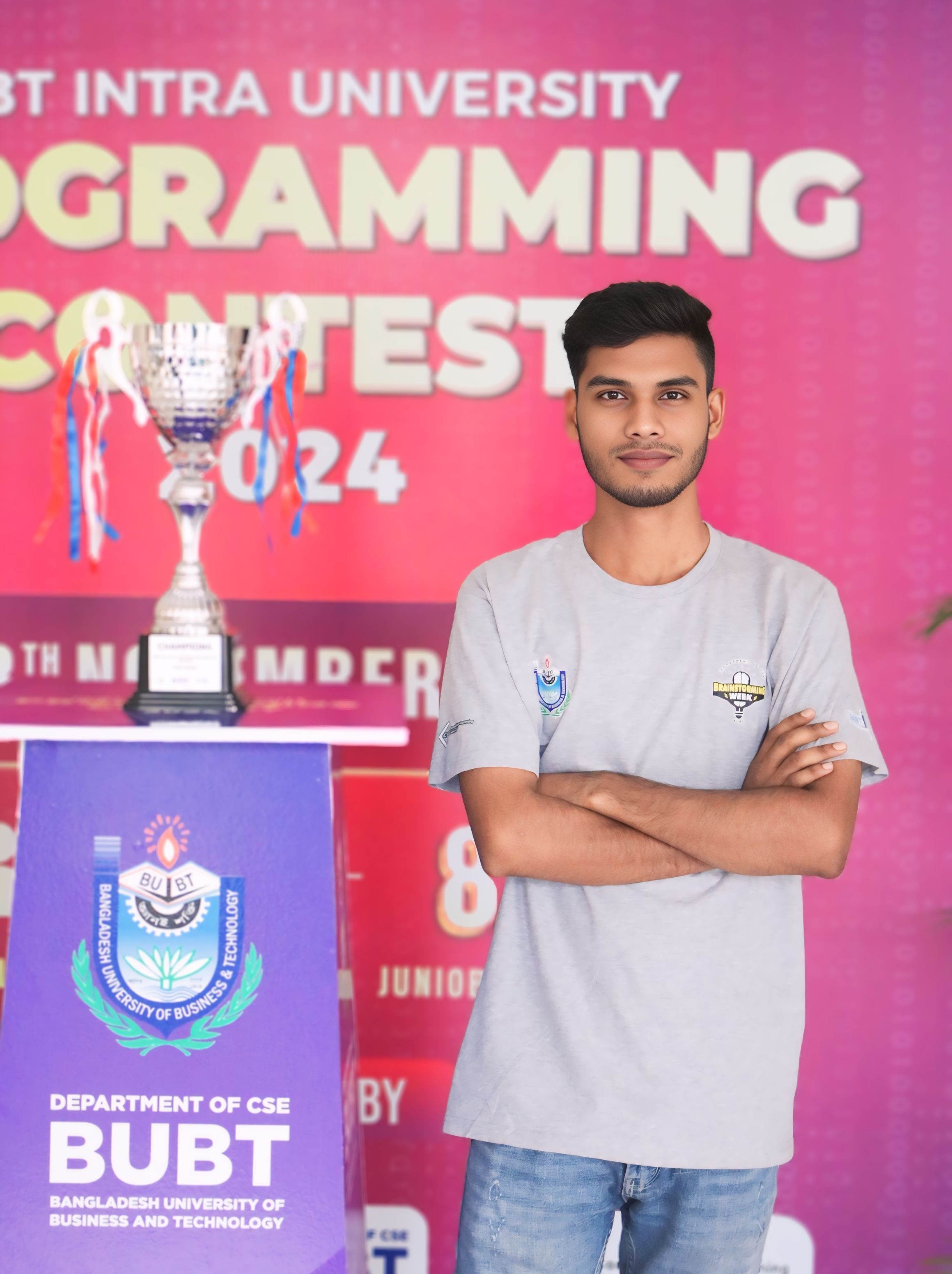 A dedicated and passionate Web developer. Currently, I am Studying Bangladesh University of Business and Technology (BUBT). Now I'm pursuing my degree with a strong focus on becoming a proficient Software Engineer. I have honed my skills in various programming languages, algorithms, and data structures throughout my academic career. I am constantly exploring new technologies and methodologies to stay up-to-date with the ever-evolving landscape of Software Engineering.