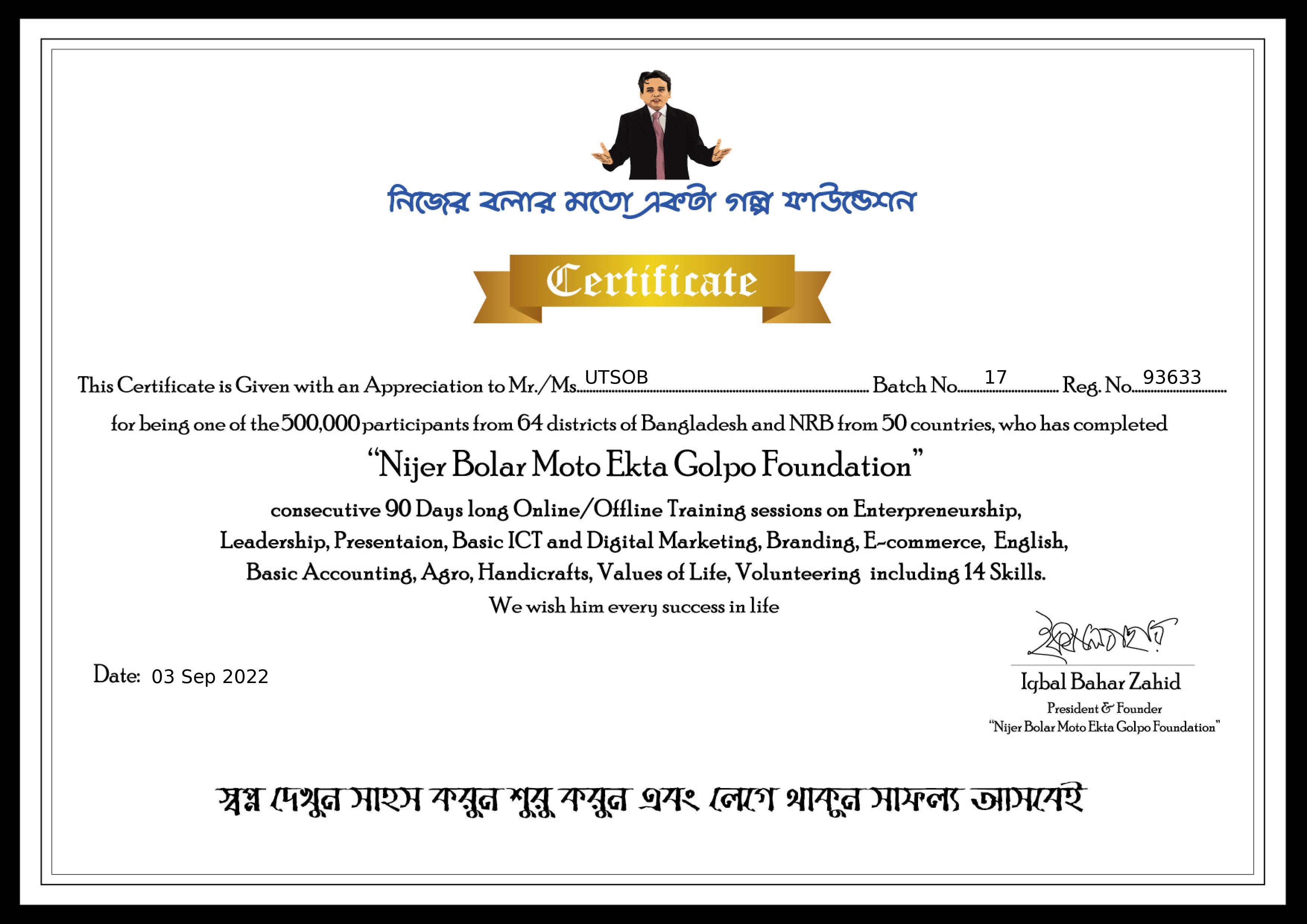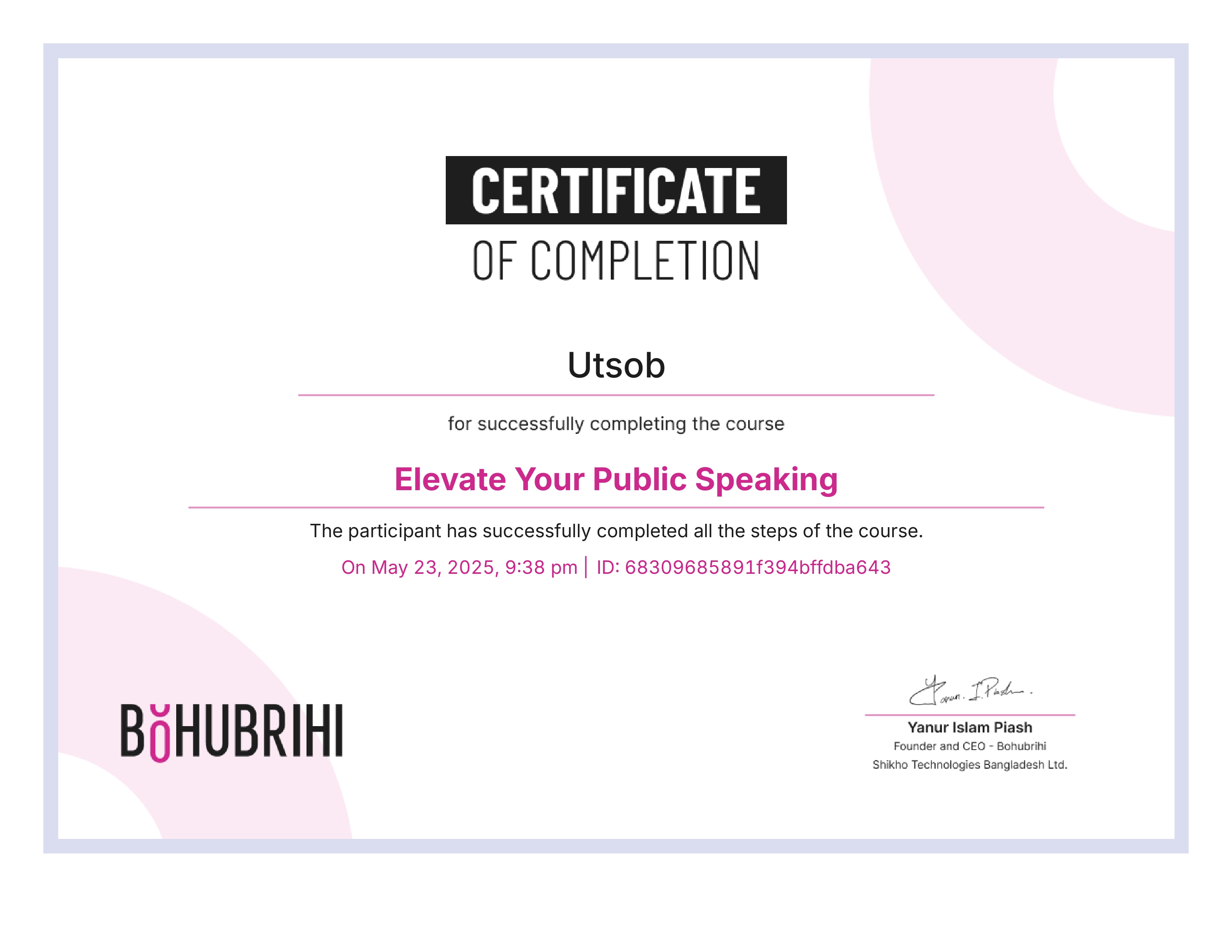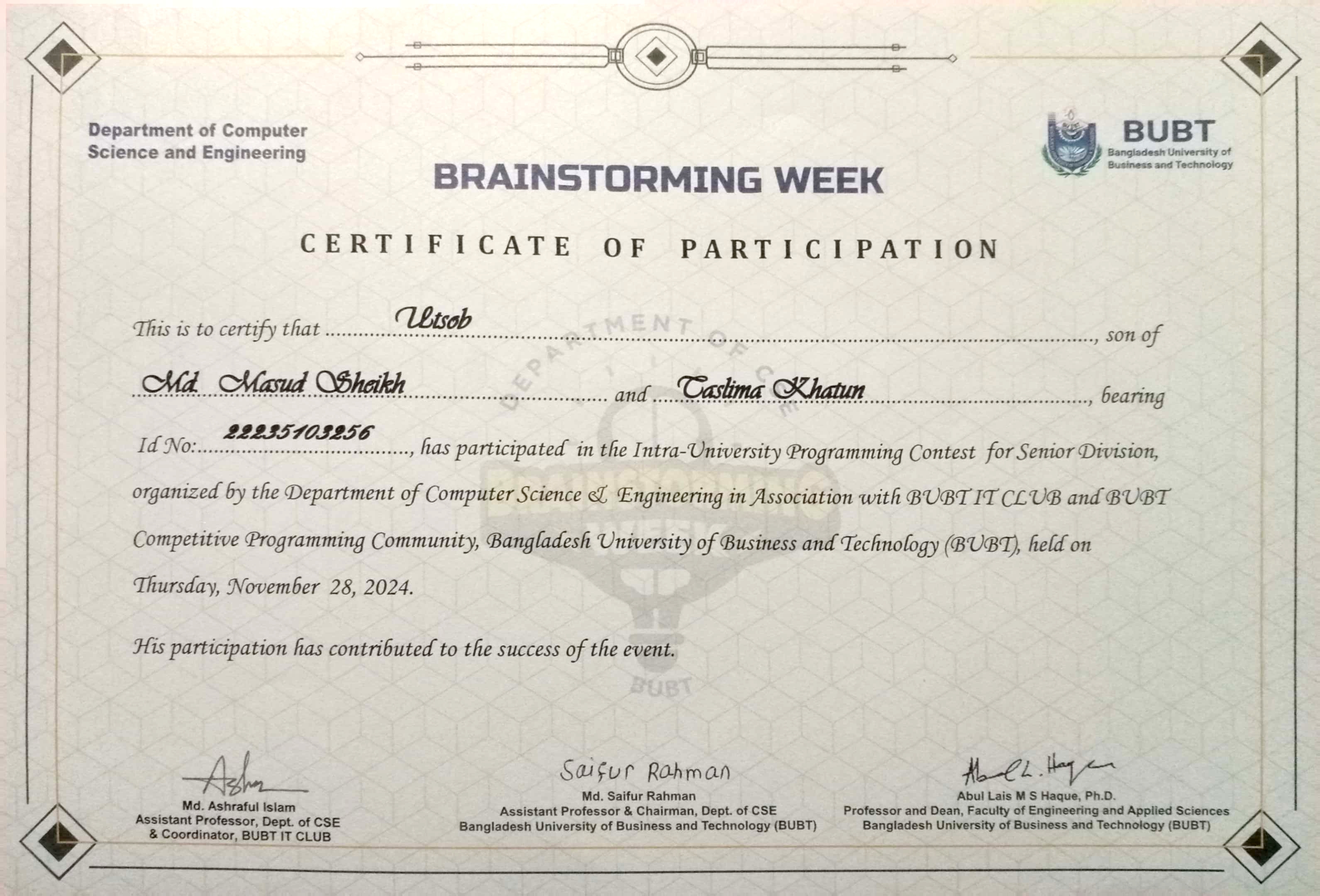 A dedicated and passionate Web developer. Currently, I am Studying Bangladesh University of Business and Technology (BUBT). Now I'm pursuing my degree with a strong focus on becoming a proficient Software Engineer. I have honed my skills in various programming languages, algorithms, and data structures throughout my academic career. I am constantly exploring new technologies and methodologies to stay up-to-date with the ever-evolving landscape of Software Engineering.